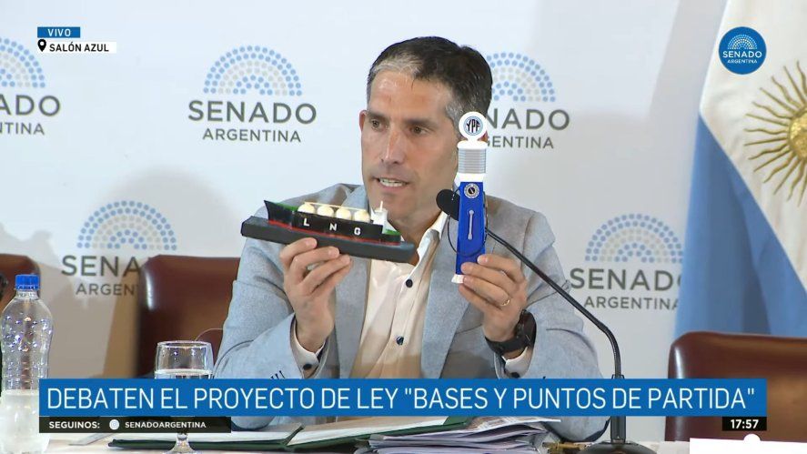 El experto en hidrocarburos fue al plenario de comisiones con cuatro elementos: un resorte, una regla de plástico, un pequeño surtidor de YPF y una maqueta de un buque de GNL. Con eso le alcanzó para graficar la necesidad de modificar la Ley Bases para que favorezca las grandes inversiones sin perder de vista el mercado interno y el desarrollo productivo y tecnológico nacional. “Yo creo que entró esa bala. Lo van a modificar”, le comenta a INFOCIELO, esperanzado.