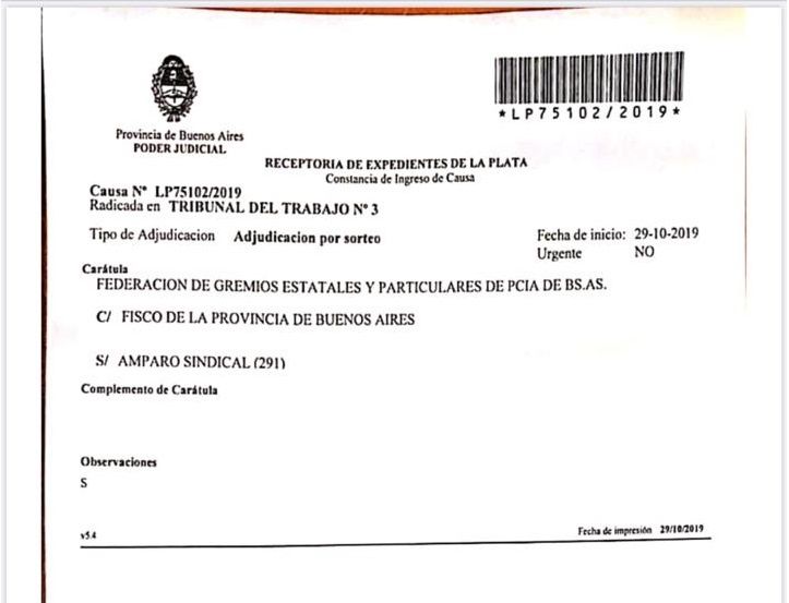 Desde el gremio señalaron que la presentación judicial fue “ante los reiterados pedidos al gobierno bonaerense solicitando reabra la paritaria estatal”, y en medio de “la demora y el silencio de parte del mismo, sin ánimo de convocar a la negociación colectiva”.