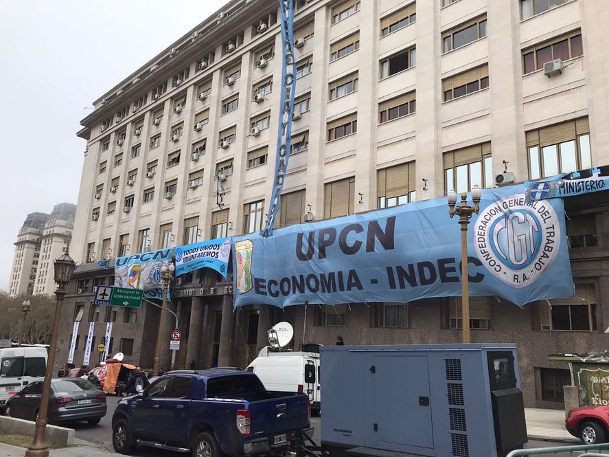 Gremios nacionales empezaron a concentrarse frente al ministerio de Economía de la Nación, a la espera de los anuncios sobre el pago del impuesto a las ganancias que el ministro y precandidato a presidente, Sergio Massa, realizará este lunes junto a las centrales obreras.
