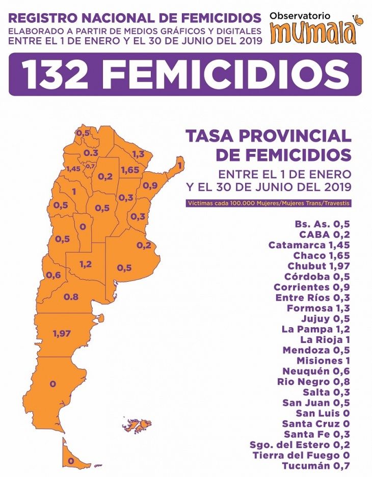 Son 132 los femicidios que se registran en los primeros seis meses del año en todo el país. El relevamiento de mujeres asesinadas fue realizado por el Observatorio MuMalá, basado en registros de medios gráficos y digitales de toda la Argentina.