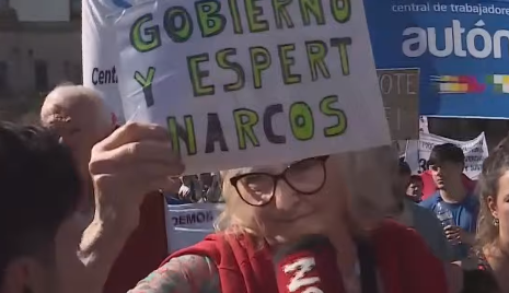 Pasadas las 15:22hs el ambiente se volvió mucho más tenso y los manifestantes comenzaron a cantar: “Son todos narcos, la pu… que lo parió”. Mientras continuaban llegando aún más efectivos al lugar.