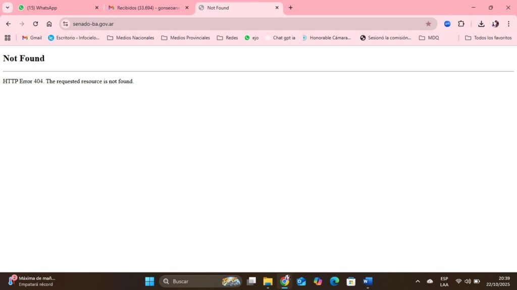 Luego, la web quedó en blanco con un mensaje que reportaba un error “NOT FOUND. HTTP error 404. The requested resource is not found”. A las horas, se reestableció, pero sin nueva información.