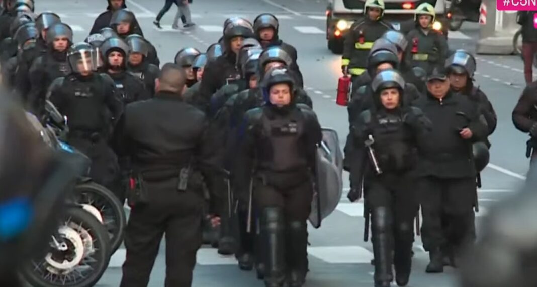 Como todos los miércoles, se realizó una nueva Marcha de los jubilados en las cercanías de Congreso de la Nación y otra vez se desplegó un mega operativo de las fuerzas de seguridad que supera en gran numero a los manifestantes. Hay dos mujeres detenidas.