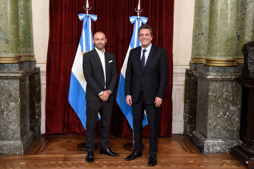 Javier Mascherano junto al presidente de la cámara de Diputados, Sergio Massa