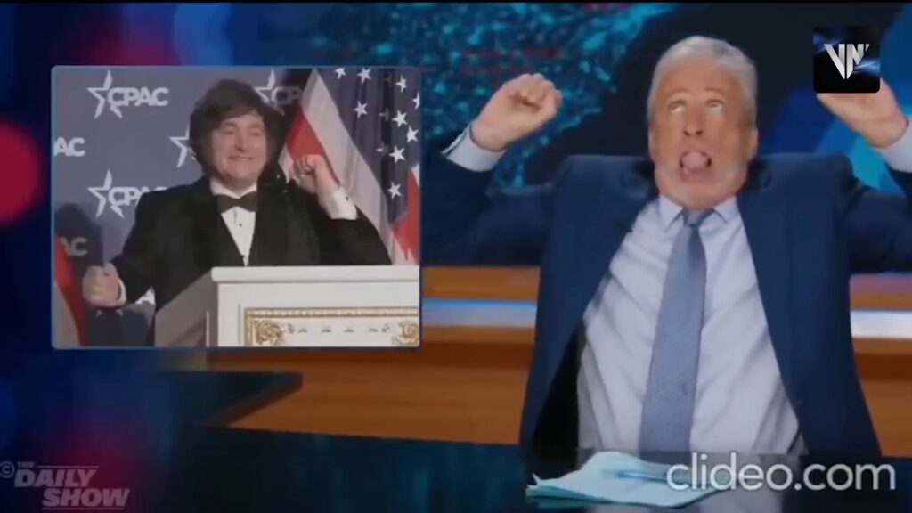 La televisión estadounidense volvió a posar su mirada sarcástica sobre la Argentina. Esta vez fue Jon Stewart, conductor de The Daily Show, quien dedicó un segmento al presidente Javier Milei y su reciente “aparición danzarina”.