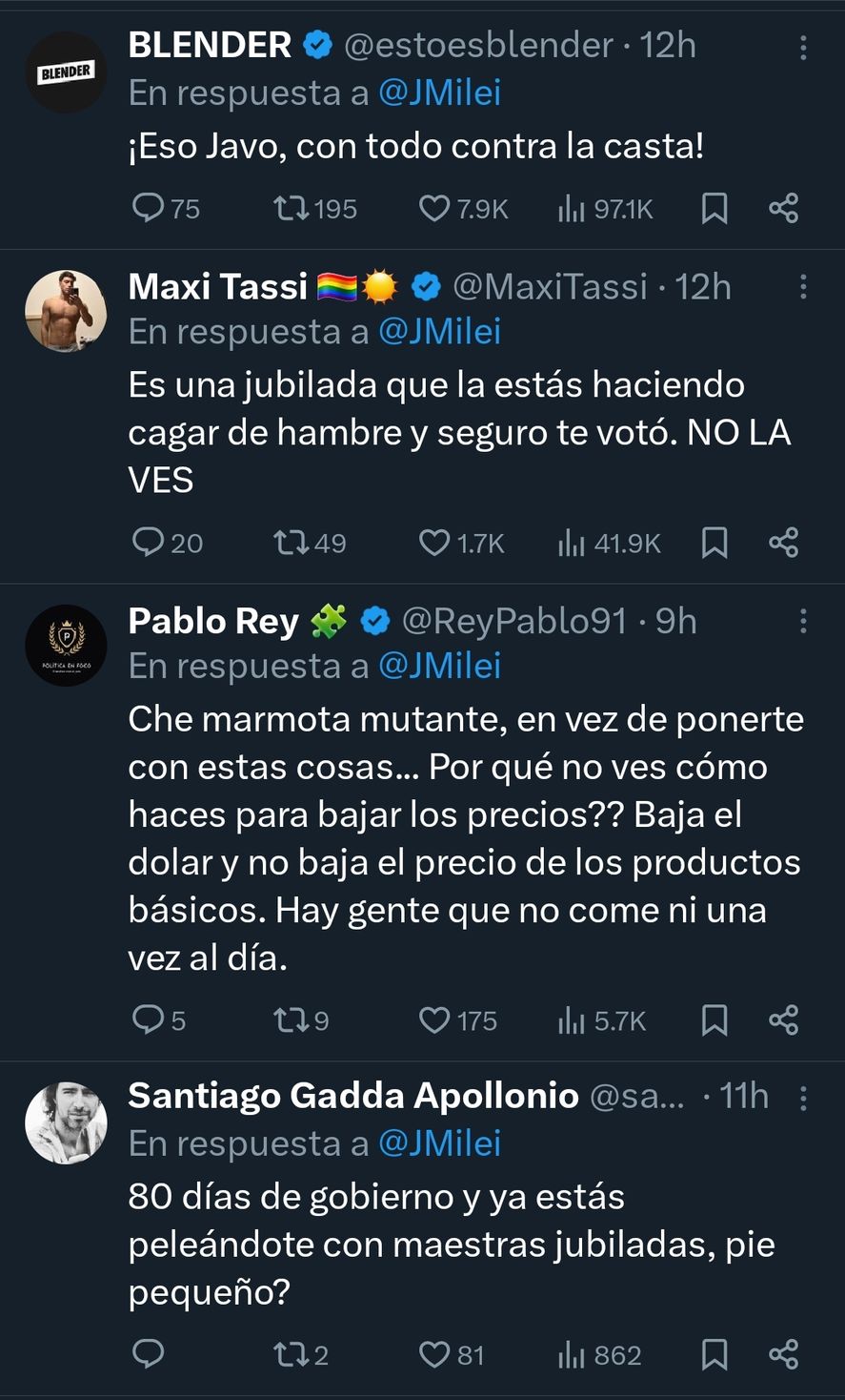 Lógicamente todos salieron a cruzar al comunicador por intentar desprestigiar y desautorizar el reclamo genuino con un detalle menor, hasta insignificante, de si la ex maestra fue específicamente o no docente de aula de Javier Milei.