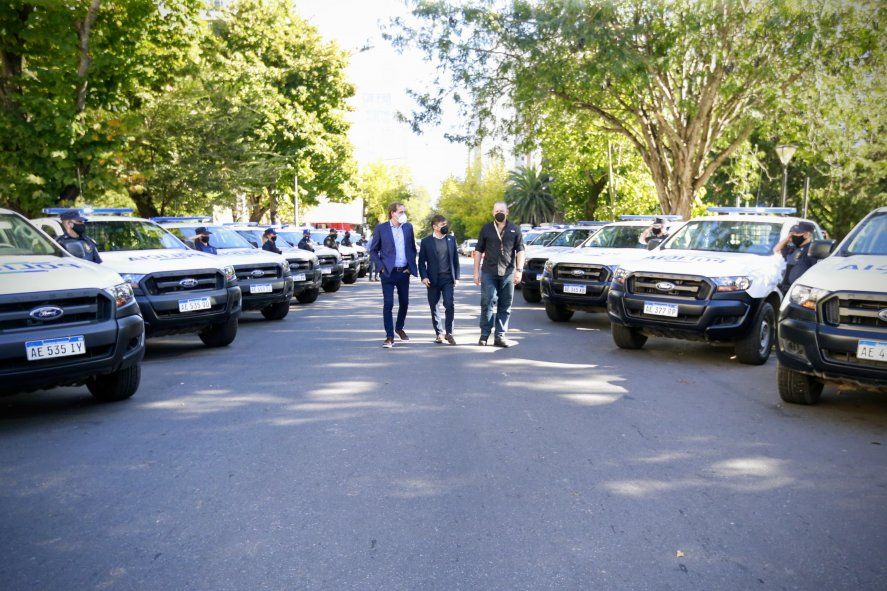 El gobernador de la provincia de Buenos Aires, Axel Kicillof, encabezó esta mañana junto al ministro de Seguridad, Sergio Berni, y al intendente de La Plata, Julio Garro, el acto de puesta en funcionamiento de 60 nuevas camionetas que serán destinadas a fortalecer las tareas de patrullaje en el municipio.