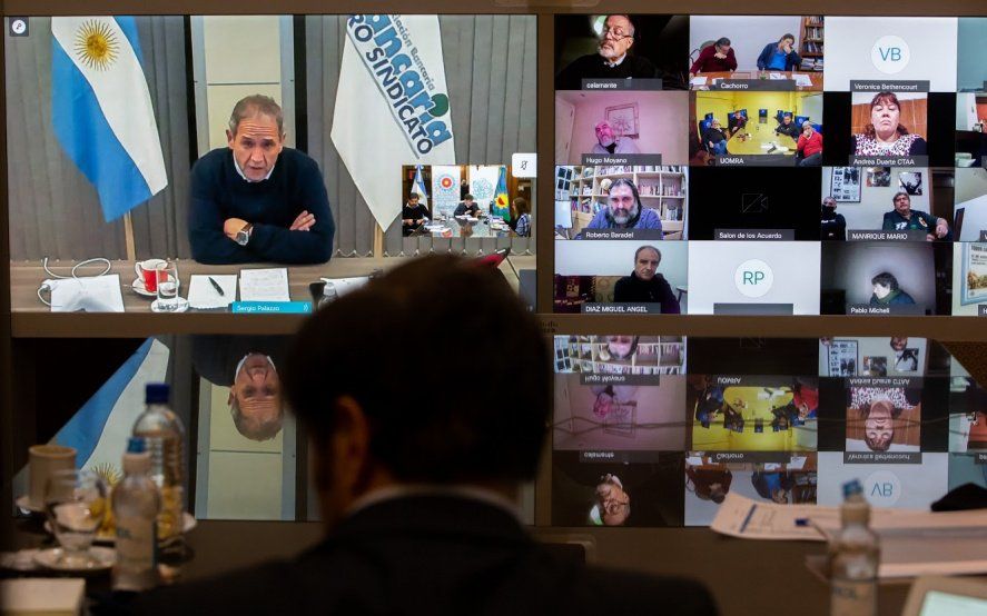 La convocatoria fue amplísima e incluyó a todas las líneas gremiales por afuera y por adentro de la CGT. Del otro lado de pantalla estuvieron, por ejemplo, los camioneros Hugo y Pablo Moyano, el bancario Sergio Palazzo, el docente Roberto Baradel (Ctera), Ricardo Pignanelli (Smata), Antonio Caló (UOM), Gerardo Martínez (UOCRA) y Andrés Rodríguez (UPCN).
