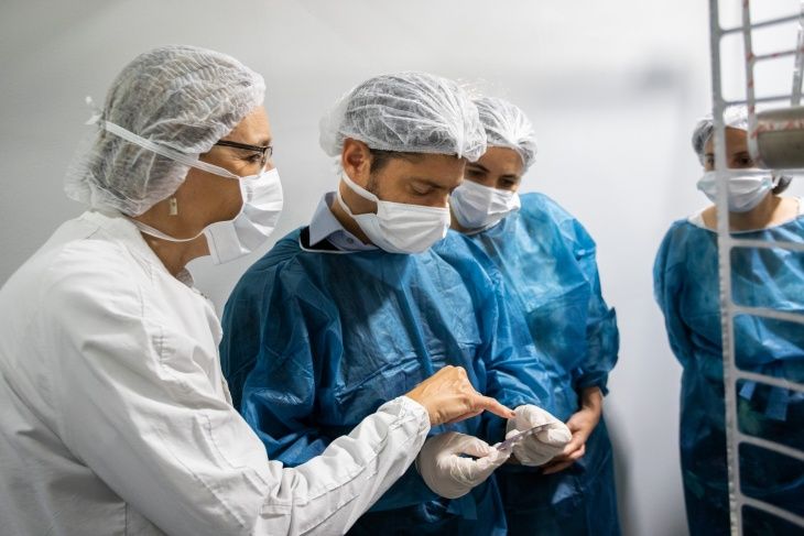 El gobernador bonaerense, Axel Kicillof, visitó hoy el Instituto Biológico “Tomás Perón”, el laboratorio de producción pública de medicamentos que está fabricando alcohol en gel en La Plata, donde informó que se duplicó la producción del gel en la Provincia. La información oficial precisó que la capacidad productiva de la planta de alcohol en gel del Instituto Biológico es de unas 2000 unidades de 250 gramos por día. Pero, además, se trabaja en un contrato de tercerización con laboratorio Farmacoop (Ex-Roux Ocefa), con capacidad productiva de 8000 unidades de 250 gramos por día.