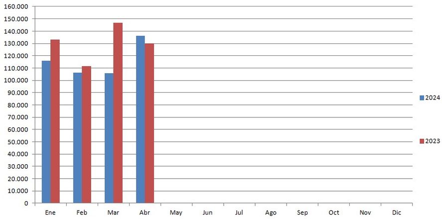 El último mes analizado fue el que generó cierta espectativa para los próximos meses ya que mostró un incremento importante con respecto a la preocupante situación que se había experimentado en marzo. En el mes de abril se comercializaron 136.230 unidades, una suba del 4,66% respecto a 2023 y también una leve mejoría con respecto al mes anterior, en el que se vendieron 105.969 vehículos (28,56%).