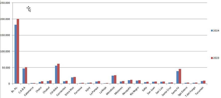 Si entramos en detalles con respecto a las provincias, las estadísticas revelan una crísis generalizada en todo el país, aunque, por supuesto, en algunos lugares la situación afectó más y en otros menos. Las provincias con la mayor baja fueron Formosa (30,56%), La Rioja (26,40%) y Jujuy (25,15%), mientras que la que menos baja percibieron fueron Entre Ríos (6,93%) y Mendoza (5,98%).