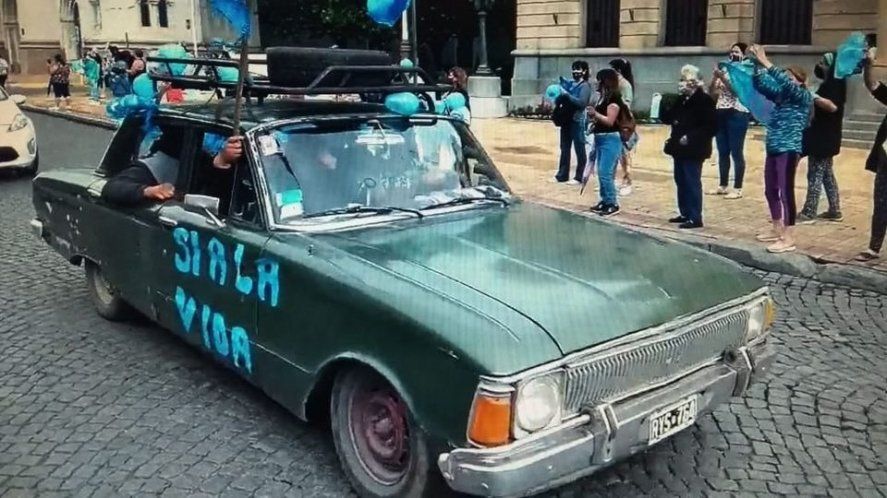 Un falcon verde se paseรณ por las calles de Tandil durante la manifestaciรณn y caravana que organizaron grupos pro vida, este sรกbado. El sรญmbolo de la dictadura cรญvico-militar llevaba la consigna โSรญ a la vidaโ, pintada de color celeste en una de las puertas laterales del vehรญculo.