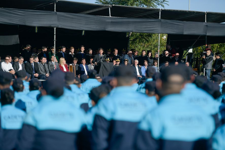 Allí estuvo acompañado por intendentes del oficialismo, pero también de la oposición ya que los oficiales serán parte de la nueva Policía de Aproximación Barrial, que como señaló Infocielo esta semana ya comenzarán a desplegarse en 11 municipios del Gran Buenos Aires donde hay mayor nivel de conflictividad.