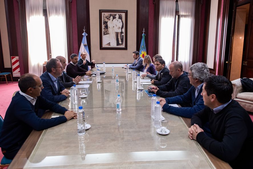 Participaron también de la reunión el jefe de Gabinete provincial, Martín Insaurralde; los ministros de Desarrollo Agrario, Javier Rodríguez; de Hacienda y Finanzas, Pablo López; y de Infraestructura y Servicios Públicos, Leonardo Nardini; la ministra de Gobierno, Cristina Álvarez Rodríguez; el presidente del Banco Provincia, Juan Cuattromo; el director ejecutivo de ARBA, Cristian Girard; y el administrador general de la Dirección de Vialidad, Hernán Y Zurieta.