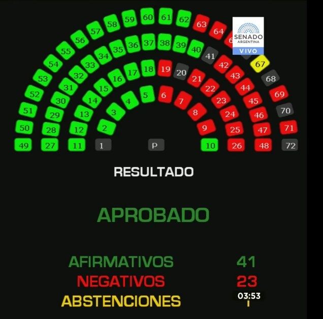 El Senado sancionó este sábado por la madrugada la Ley de Solidaridad Social y Reactivación Productiva con 41 votos a favor, 23 en contra y 1 abstención. Ahora resta la publicación en el Boletín Oficial para que quede promulgada la misiva.