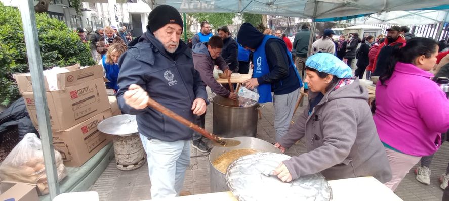 “Estamos haciendo una olla popular para visibilizar la situación crítica que se vive en merenderos y comedores de la región. Desde hace varios meses hay dificultades para sostener el crecimiento de la demanda, hay cada vez más gente que solicita al menos una comida por día”, dijo a INFOCIELO Marcos Picci, uno de los dirigentes presentes.