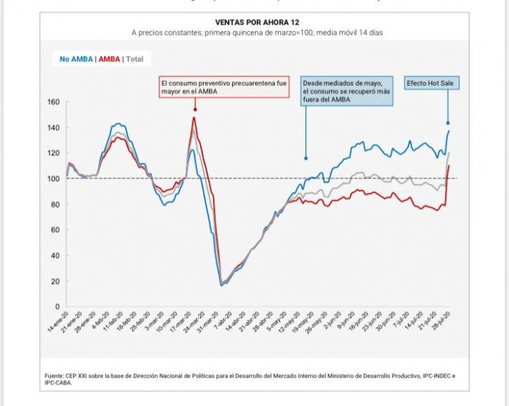 Un informe del Ministerio de Desarrollo Productivo reflejó las mejorías del sector industrial y la evolución del consumo debido a la recuperación de stocks tras elparate inicial por el proceso de aislamiento estricto de abril y mayo, y por el incremento en las ventas de bienes dirables ligados al hogar.