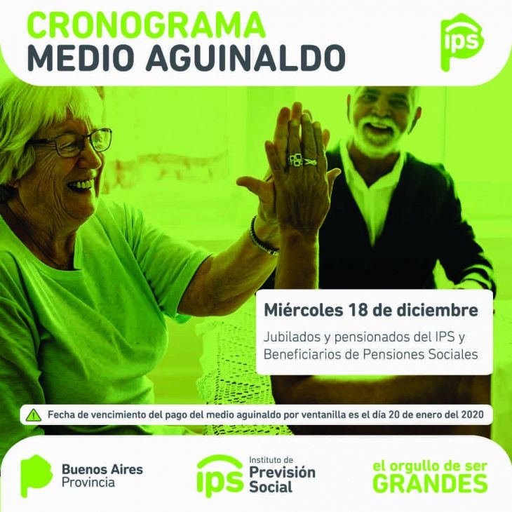 El Instituto de Previsión Social Bonaerense (IPS) dio a conocer que los jubilados y pensionados, y beneficiarios de pensiones sociales percibirán la segunda cuota del Sueldo Anual Complementario (SAC) este miércoles 18.