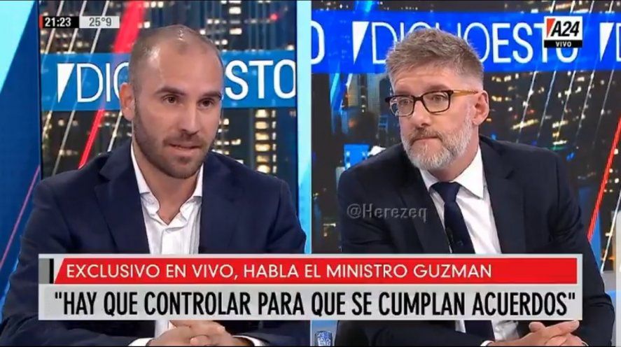 El Ministro de Economía Martín Guzmán fue invitado al nuevo espacio televisivo que conduce Luis Novaresio por la señal A24. Como cada ocasión en que un colaborador presidencial del área económica visita la TV los momentos dejan de ser anecdóticos y se transforman en políticos, porque cada palabra que pronuncia mueve expectativas o permite sacar inferencias de sus dichos para prever que sucederá con la economía del país: el gran tema nacional desde que se fundara esta patria.