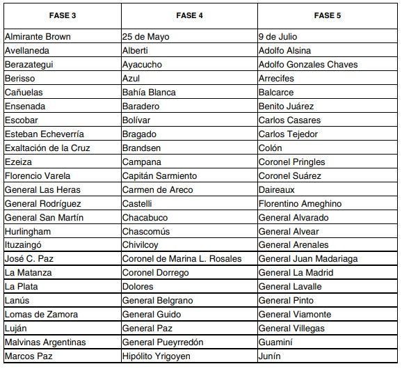 Mientras el Gobierno bonaerense reglamentó la nueva etapa del aislamiento y distanciamiento social para toda la Provincia, al mismo tiempo dio a conocer el listado de fases en las que se encuentran los municipios.