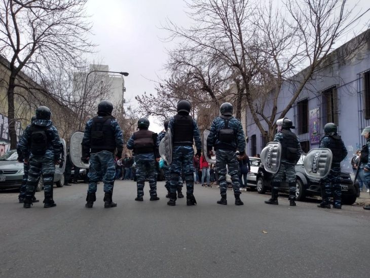 Allí, una de las integrantes de la agrupación Patria Grande identificada como Pilar Posadas que se encontraba en una de las mesas de campaña, se acercó para mediar con los policías.