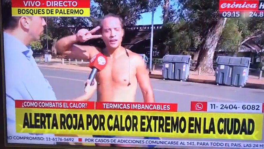 Luego de consultarle acerca de esa actividad física que estaba desarrollando en medio del agobiante calor, y tras pedirle al corredor que se hidrate mientras lo reporteaba, tanto el movilero como sus colegas en estudios de Crónica TV no supieron que responder ante el asombro que les generaron las palabras finales del hombre que realizaba el otrora llamado deporte del “footing”.