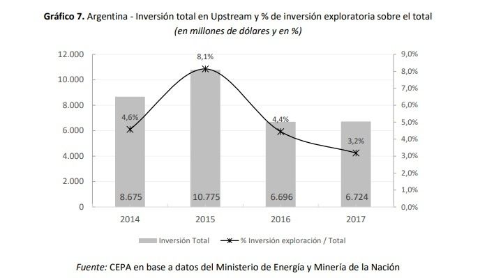 Pero lo más alarmante se da en el plano de las inversiones: “Las inversiones totales en el sector Upstream (exploración y producción) cayeron considerablemente en los últimos dos años. En 2017 se invirtió un 37,6% menos que en año 2015 en Argentina (tanto en gas como en petróleo)”.