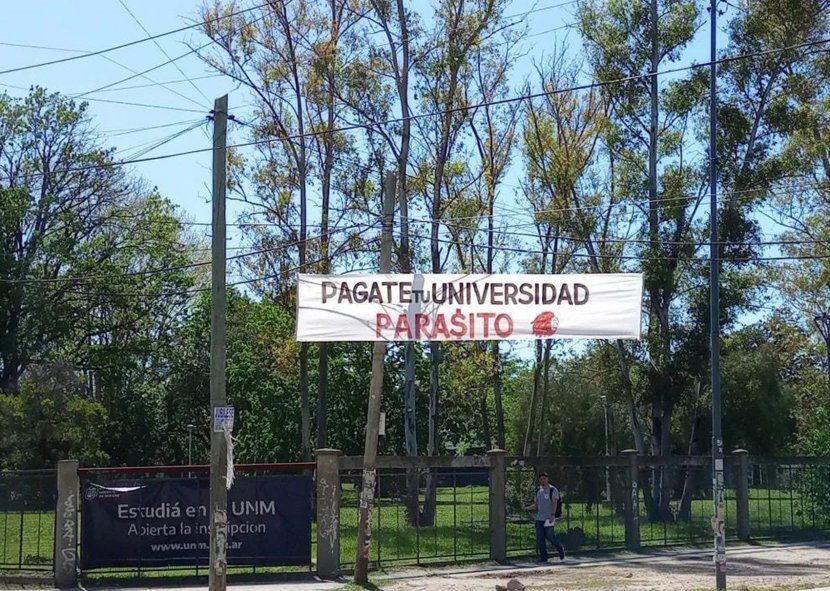 Hace un mes, un pasacalles con la frase “Pagá tu universidad parásito. Milei 2023” fue colocado frente a la Universidad Nacional de La Matanza.