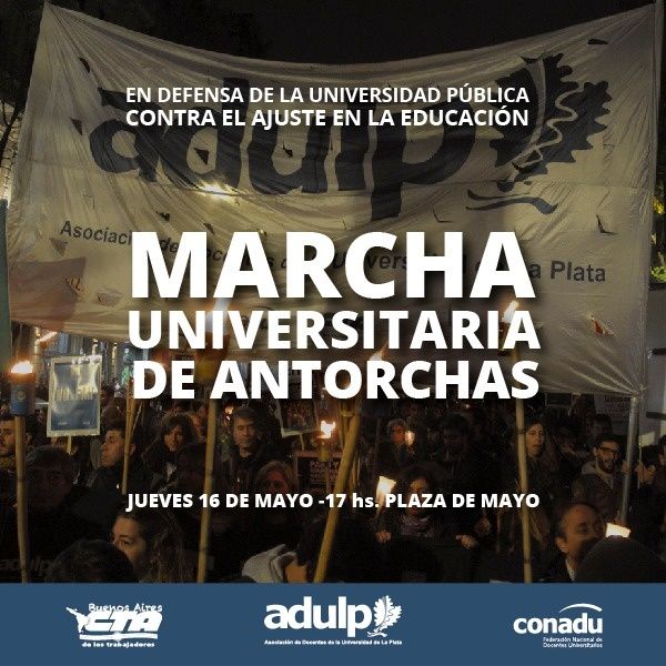 Fue en el plenario de secretarios generales de la CONADU que se resolvió impulsar el paro y la marcha Universitaria de Antorchas para este jueves 16 de mayo y jornadas nacionales de protesta de 72 horas a partir del lunes 13 de mayo. A su vez, se desarrollará un nuevo plenario para la tercera semana de mayo y un paro en suspenso para el 28 y 29 de mayo de no arribarse a una propuesta que pueda someterse a consideración.
