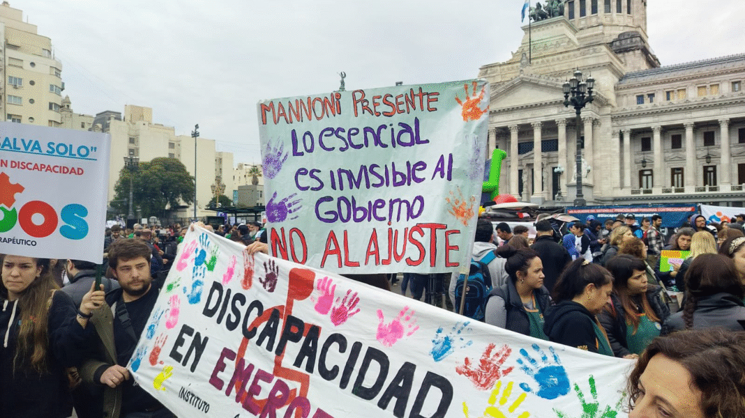 Mientras en el Senado se debate la prórroga por dos años de la moratoria previsional, la actualización de las jubilaciones con un aumento del 7,2% y del bono a $110.000 y la declaración de la emergencia en discapacidad, afuera familiares, trabajadores y personas con discapacidad se autoconvocaron con pancartas y pedidos desesperados en contra el ajuste.