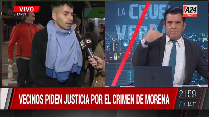 El móvil en vivo de América 24 sobre el caso del asesinato de la pequeña Morena en Lanús, que dejó claro como un periodista en piso hacía un gesto “cinematográfico” para cortar al entrevistado porque criticaba a Néstor Grindetti y a Patricia Bullrich