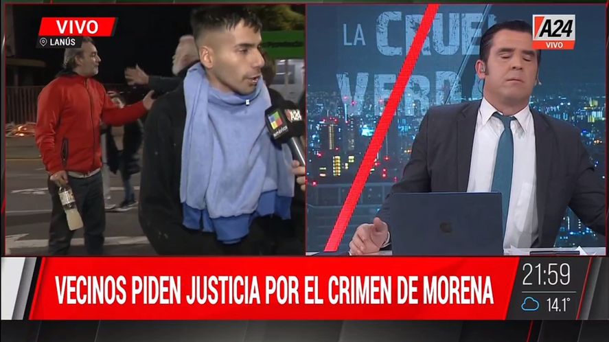 El hecho tuvo lugar en una avenida de Lanús cuando el movilero de A24 eligió al azar a una de las personas movilizadas por el horrendo crimen que conmueve al país por estas horas.
