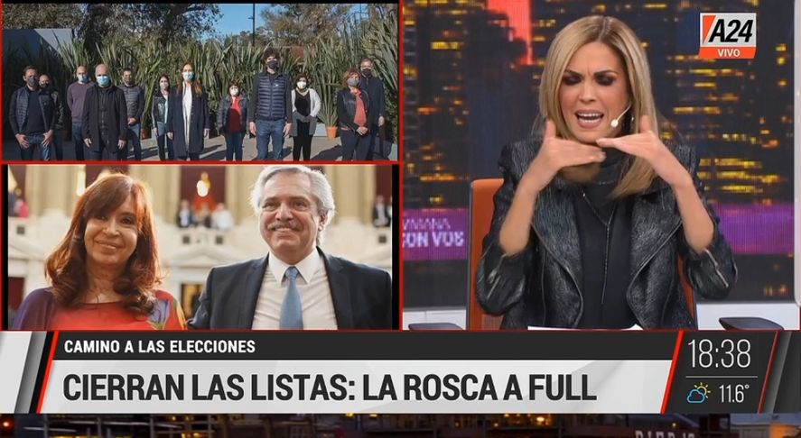 Más tarde, en otro momento del programa, se dirigió a los candidatos de Juntos (la ex alianza Cambiemos), colocando una foto en pantalla, en la cual pudo verse a María Eugenia Vidal, de pie y distanciada, con varios dirigentes, entre ellos Horacio Rodríguez Larreta, Martín Lusteau, Graciela Ocaña y otros, a los que Canosa llamó “el regreso de los muertos vivos”.