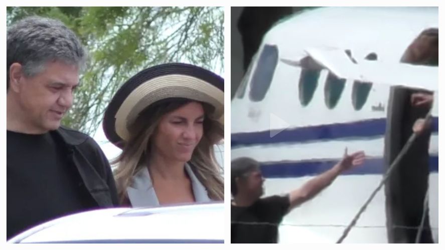 El Jefe de Gobierno porteño, Jorge Macri y su esposa, la periodista María Belén Ludueña, llegando en jet privado al Uruguay, para pasar las fiestas en Punta del Este. La imagen no llegó a los medios corporativos argentinos