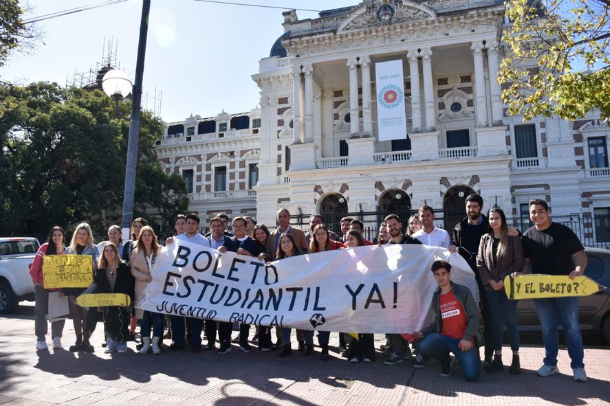 La Juventud Radical de la provincia de Buenos Aires se manifestรณ este jueves en La Plata y protestรณ frente al edificio de la Gobernaciรณn en reclamo del pago pendiente y la ampliaciรณn del boleto estudiantil.