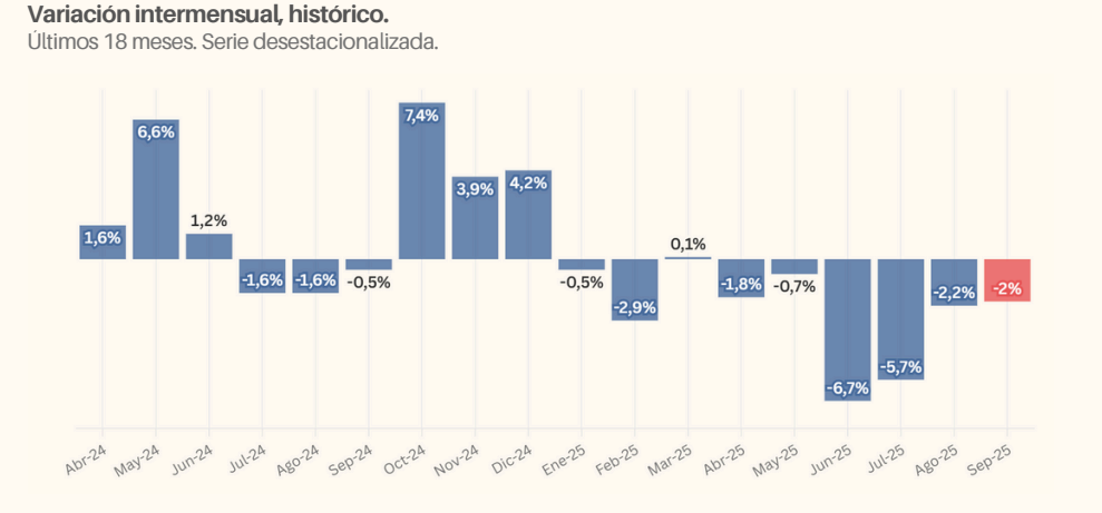 El rubro registró en septiembre una caída interanual del 4,3% en las ventas a precios constantes. La evolución del sector estuvo condicionada por la baja disponibilidad de efectivo, el endeudamiento de los hogares y el uso limitado del crédito. La contracción del poder adquisitivo redujo la demanda de productos de media y alta gama, mientras que el consumo se concentró en ofertas y liquidaciones de temporadas anteriores. La competencia desleal de ferias, ventas informales y compras en el exterior afectó el desempeño, sumado a mayores costos operativos y escasa rentabilidad. El mes se caracterizó, además, por la estacionalidad del rubro, con menores volúmenes tras el Día de las Infancias y expectativa por el repunte que suele generar octubre con el Día de la Madre