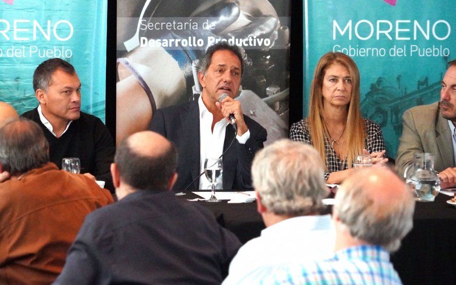 El ex gobernador Daniel Scioli se reunió hoy en Moreno con organizaciones empresariales y secretarios de producción de municipios bonaerenses para oír sus reclamos sobre las políticas económicas del gobierno nacional y exponer sus propuestas para salir de la crisis.