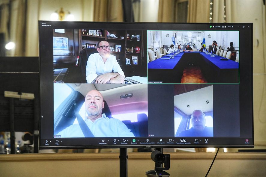 El vacío opositor se volvió a sentir, solo estuvieron los legisladores oficialistas. La reunión fue encabezada por el presidente de la ACA, Emmanuel Santalla, junto a los senadores Gustavo Soos, Amira Curi, Gabriela Demaría y Sofía Vannelli, y de manera remota, siguieron el cónclave el vicepresidente Primero del Senado, Luis Vivona y los legisladores de Unión por la Patria Sergio Berni y Adrián Santarelli.