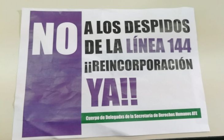 El martes las autoridades de la Línea 144 destinada a contener y asesorar a mujeres en situación de violencia resolvieron despedir a cinco trabajadoras y se inició un nuevo conflicto laboral. A raíz de esto, las empleadas perjudicadas resolvieron profundizar las medidas de fuerza que ya realizan en el marco del pedido de mejoras en las condiciones laborales. Las mismas responsabilizan tanto a la gobernadora, María Eugenia Vidal, como a al secretario de Derechos humanos, Santiago Canton, y la subsecretaria de Género y Diversidad Sexual, Agustina Ayllón.