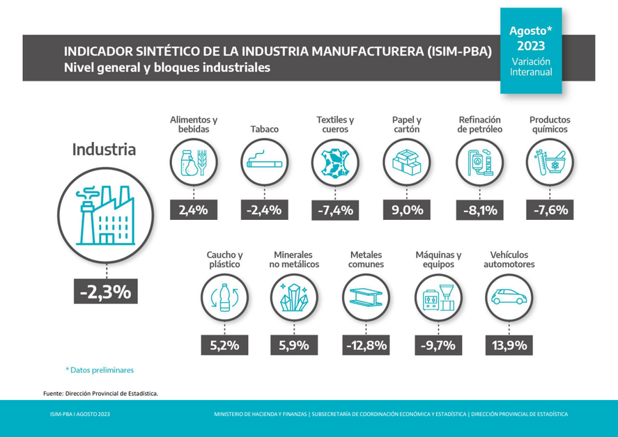 El ministro de Hacienda y Finanzas de la provincia de Buenos Aires, Pablo López, compartió los índices de la producción industrial bonaerense durante los primeros ocho meses del año y destacó el crecimiento del 1,4 por ciento, empujado por la industria petrolera, automotriz y metalúrgica.
