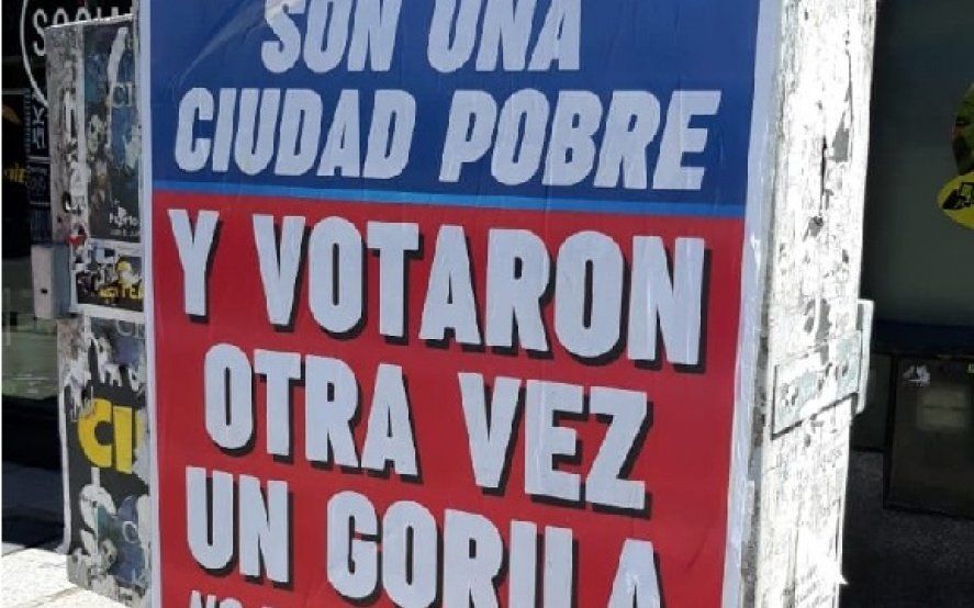 “Son una ciudad pobre y votaron otra vez un gorila. No tienen arreglo”, sentenció el afiche pegado en varios lugares de la localidad. A su vez, lleva la firma del titular del gremio que nuclea a trabajadores de la Anses, Leonardo Fabre, y también se observa el sello de la Confederación General del Trabajo (CGT).