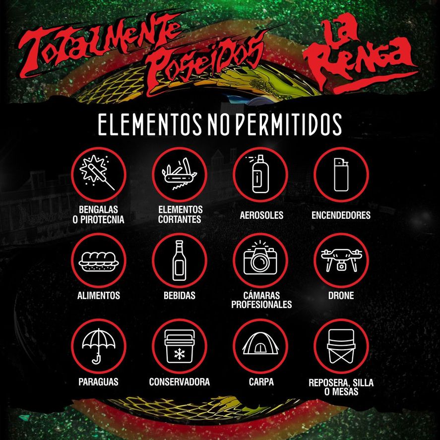 Como en cada show multitudinario se aclara con anterioridad cuales son los objetos que no se pueden ingresar al estadio.