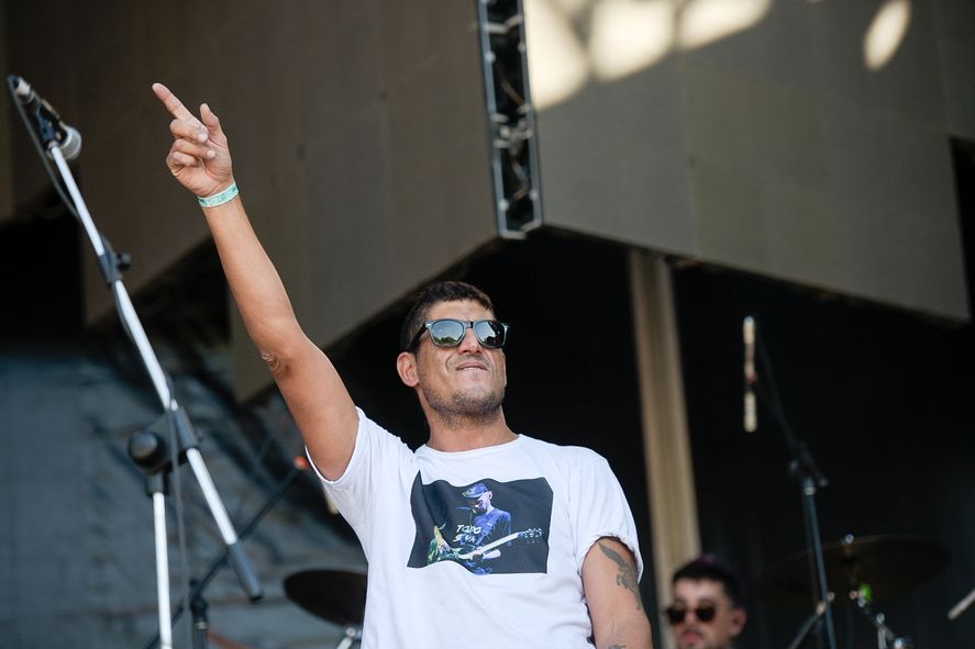 La simpatía llegó de la mano de Barrio Viejo, la banda del ex futbolista Daniel Osvaldo, que, sobre el escenario del Barranco ubicado en la entrada del predio, expuso su carisma y la peculiaridad que guarda la banda: la hermandad que pregonan desde hace más de seis años.