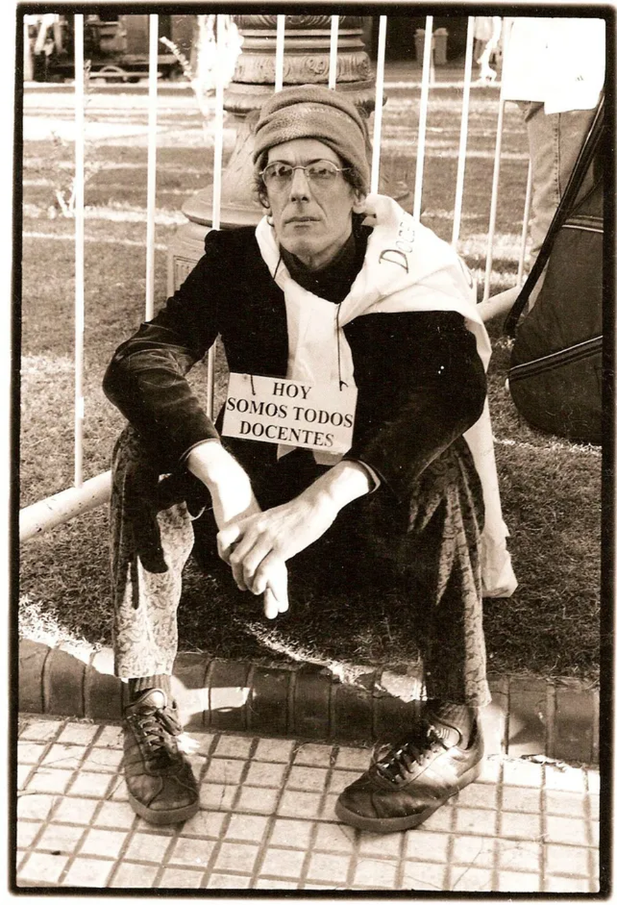 En 1997, durante el gobierno de Menem, los docentes montaron un campamento que se extendió tres años en reclamo de mejoras salariales y de una ley de financiamiento educativo. La tarde del 10 de diciembre, la Carpa Blanca instalada frente al Congreso estaba repleta de maestros y jóvenes que se apretaban para ver y escuchar a Luis Alberto Spinetta.