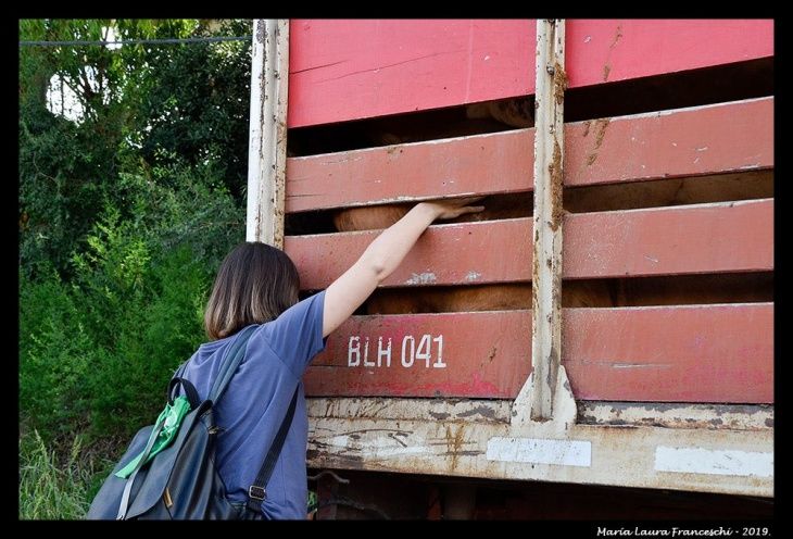 “Pudimos brindarles un último gesto de amor antes de que entraran al infierno”, expresaron desde La Plata Animal Save, el movimiento local de una red mundial originada en Toronto (Canadá) que muestra la violencia escondida detrás de la industria de la carne.