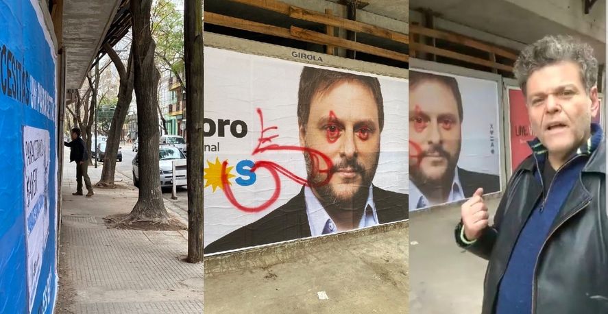 El cómico Alfredo Casero dibujó un pene apuntando a la boca de la imagen del afiche del candidato Leandro Santoro y luego se burló de la situación sin aclarar que él había sido el autor de la vandalización