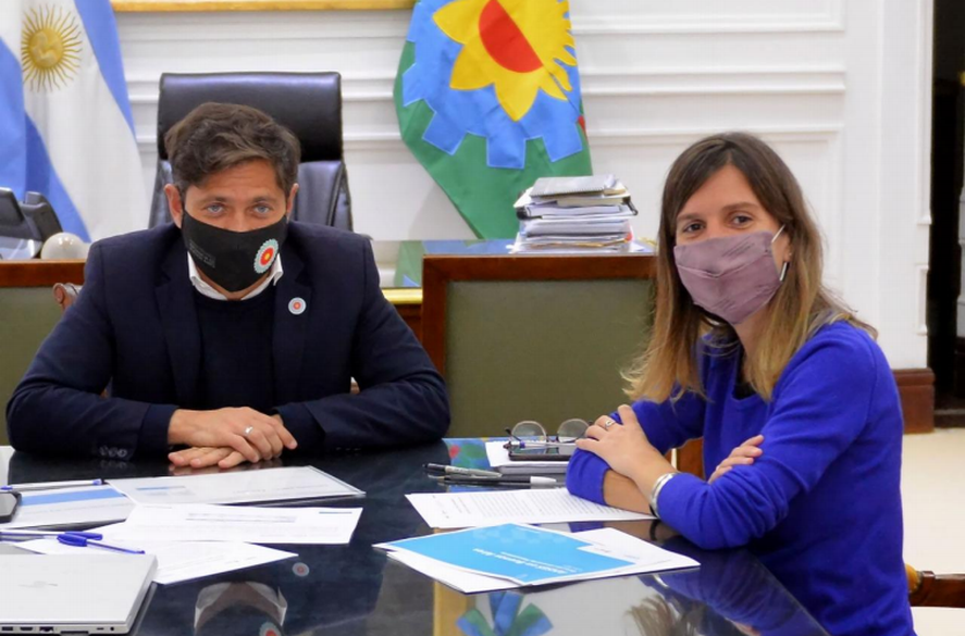 La directora ejecutiva de la ANSES, Fernanda Raverta, y el gobernador de la provincia de Buenos Aires, Axel Kicillof, mantuvieron hoy una reuniรณn en la Casa de Gobierno provincial donde analizaron los avances del beneficio de reconocimiento de aportes por tareas de cuidado a las madres bonaerenses.