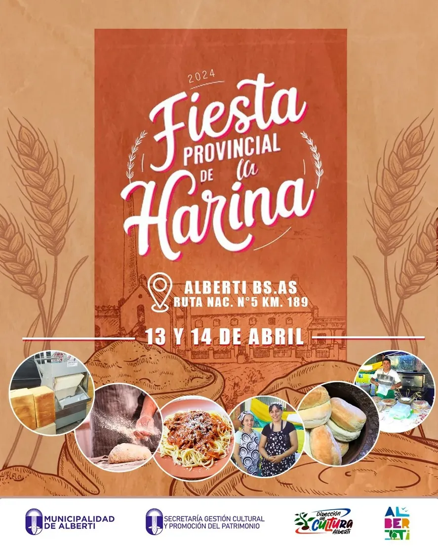 Se presentará un gran patio gastronómico que ofrecerá diferentes productos realizados a base de harina, elaborados por panaderos y pizzeros. A su vez, se realizarán capacitaciones, recorridos por el museo donde funcionó el primer molino harinero de la zona y espectáculos musicales.
