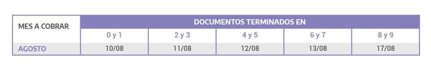 - Todas las terminaciones de DNI cobran los haberes de julio del 5 al 10 de agosto