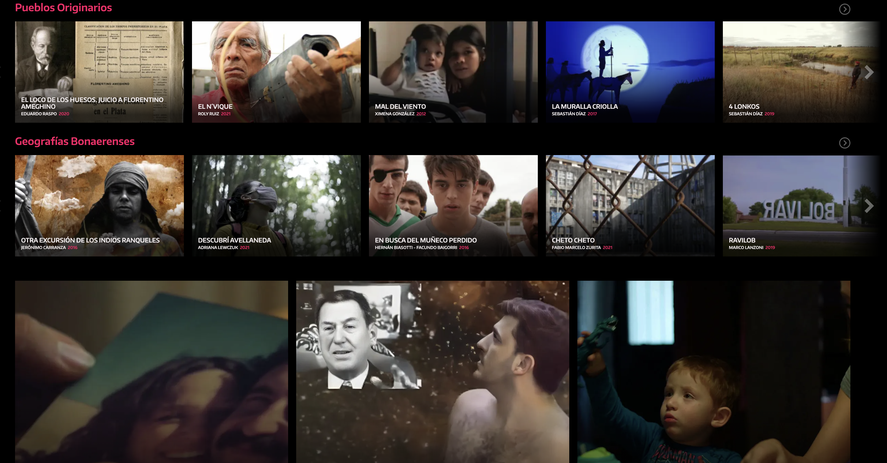 La grilla de la plataforma también incluye catálogo de locaciones, un registro de profesionales (directores, productores, actores, actrices, técnicos del sector audiovisual, exhibidores y salas de cine), un archivo audiovisual bonaerense, festivales y una red de salas.